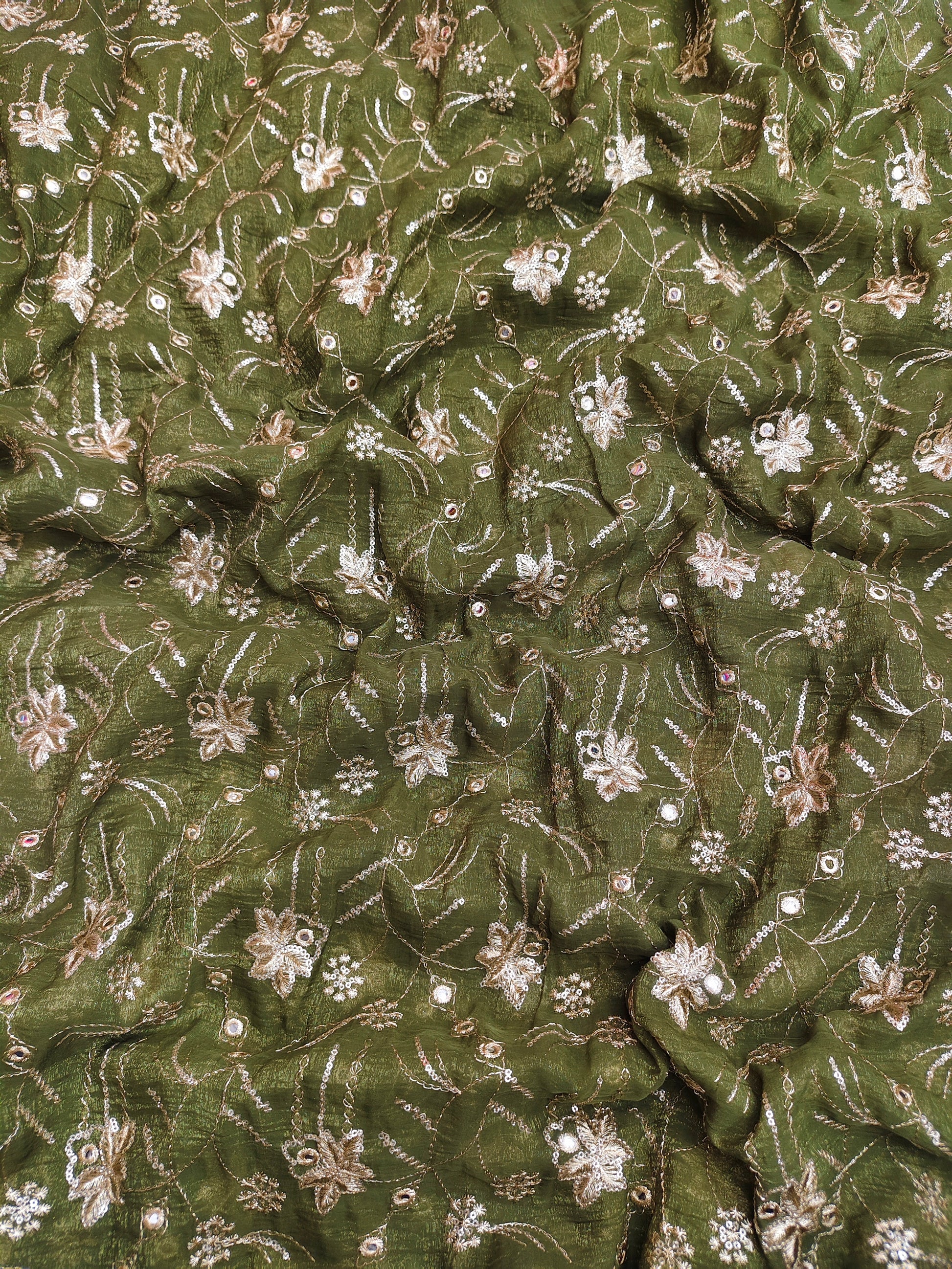 Green Gold Crush Embroidered 44"